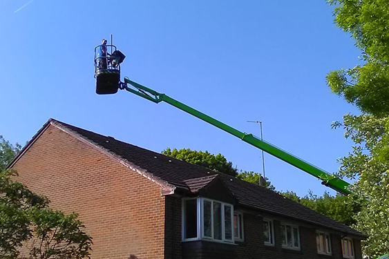 Our team used Mansafe roof access systems and cherry pickers to carry out full gutter clearance and debris removal.